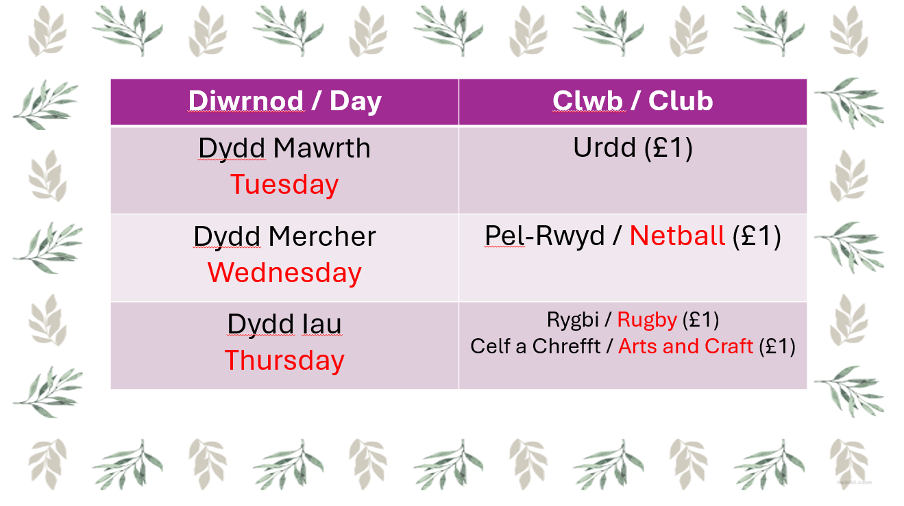 Addysg Gorfforol a Chlybiau / Physical Education and Clubs